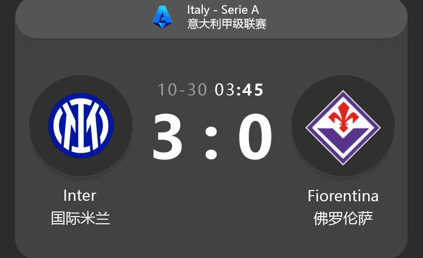 - Sep 3, 2023: Inter 4-0 Fiorentina