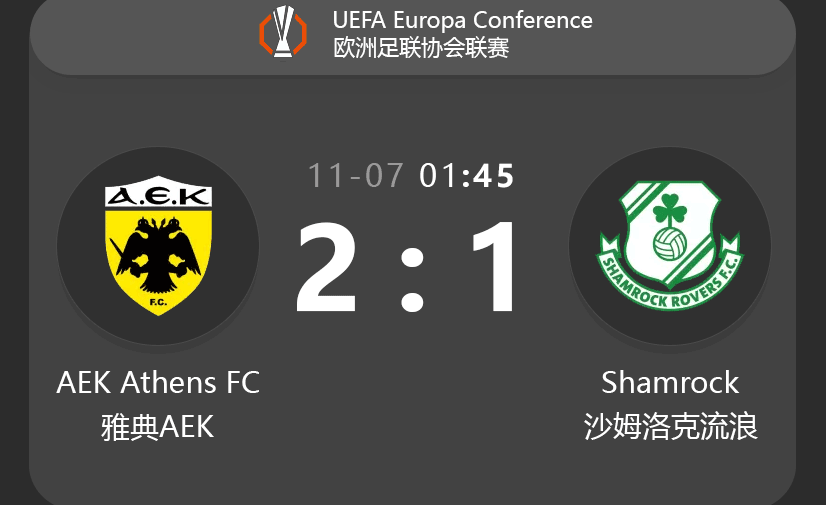 - Corners: AEK Athens 4 vs Shamrock Rovers 1