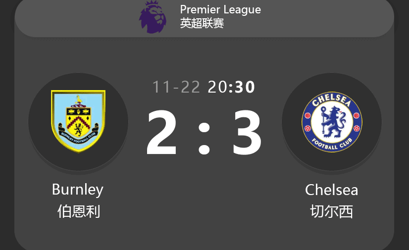 - Nov 6, 2021: Chelsea 1-1 Burnley