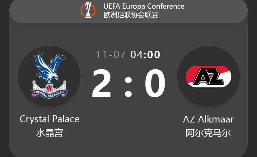 - Corners: Crystal Palace 6 vs AZ Alkmaar 2