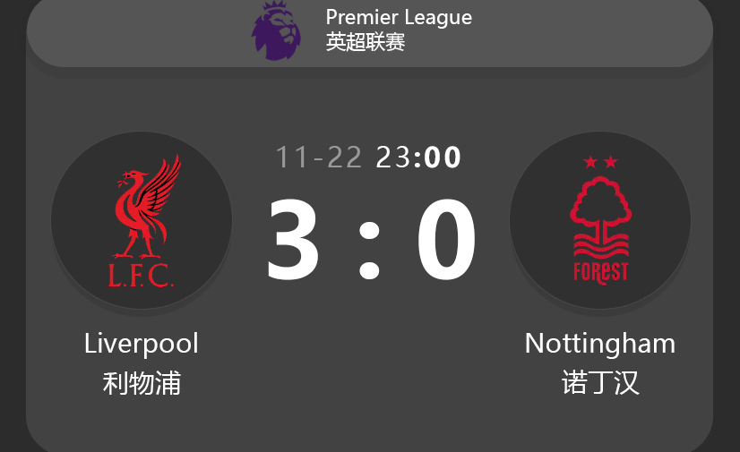 - Oct 29, 2023: Liverpool 3-0 Nottingham