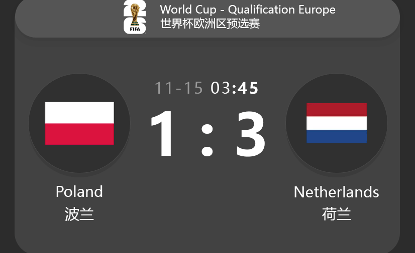 - Sep 4, 2025: Netherlands 1-1 Poland