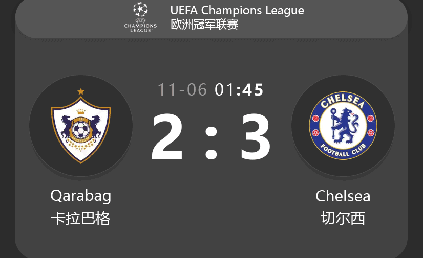 - Nov 22, 2017: Qarabag 0-4 Chelsea