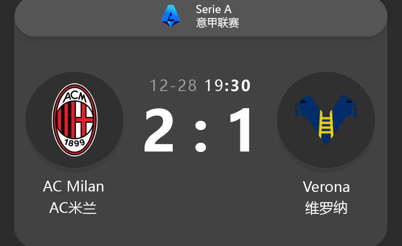 - Feb 15, 2025: AC Milan 1-0 Verona
