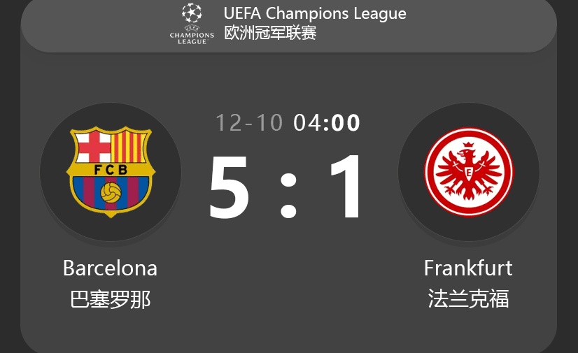- Apr 14, 2022: Barcelona 2-3 Frankfurt