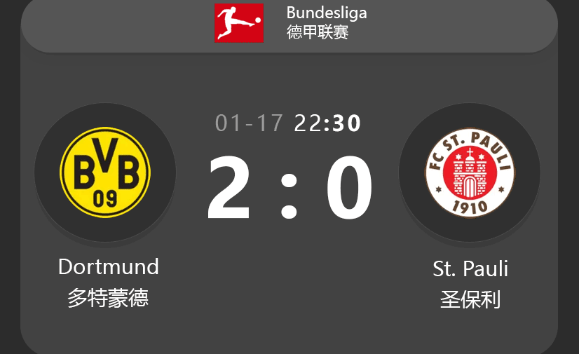 - 01 Mar 2025: Dortmund 2-0 St. Pauli