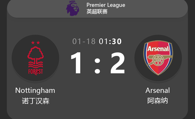 • 23 Nov 2024: Nottingham Forest 0-3 Arsenal