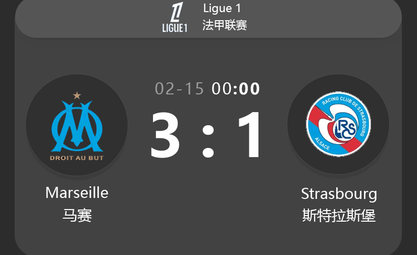 • 26 Sep 2025: Strasbourg 1-2 Marseille