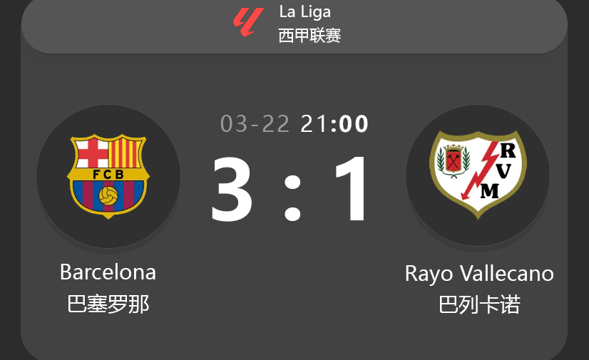 • Half-Time Score: Barcelona 1:0 Rayo Vallecano