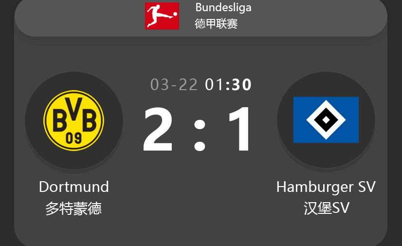 - Market Odds: Borussia Dortmund (1.44) | Draw (4.2) | Hamburger SV (6.5)