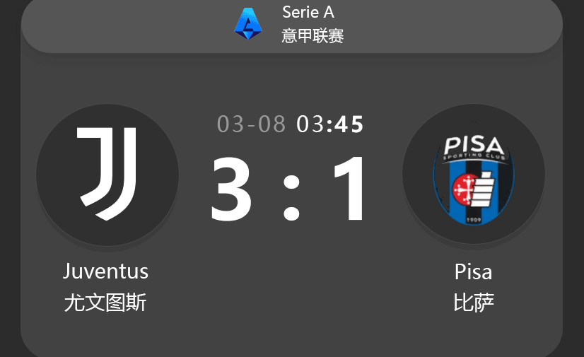 - Ball Possession: Juventus (67%) vs Pisa (33%) – Dominant possession expected from the home side.